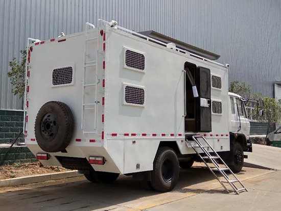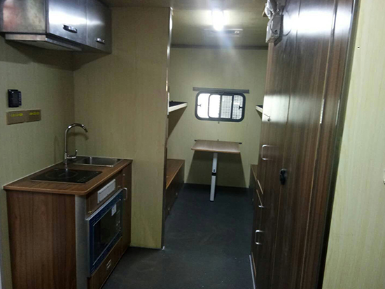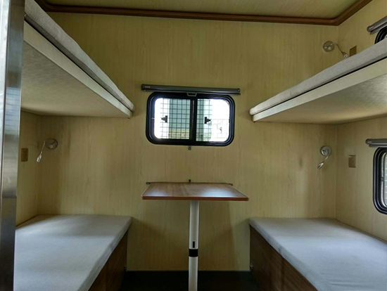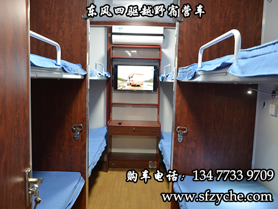 東風(fēng)大型四驅(qū)越野房車(chē)滿(mǎn)足更多路況復(fù)雜環(huán)境使用,廂體內(nèi)裝有豪華折疊床、液晶電視、儲(chǔ)物柜、應(yīng)急燈、頂燈、頂置空調(diào)、床墊、被褥、燃油加熱器、頂護(hù)欄、爬梯、隱藏抽拉梯、專(zhuān)用房車(chē)門(mén)、中空玻璃、戶(hù)外燈。由保溫廂體、空氣調(diào)節(jié)系統(tǒng)、宿營(yíng)設(shè)施、影音系統(tǒng)、電氣系統(tǒng)、通風(fēng)換氣系統(tǒng)、洗漱和衛(wèi)生設(shè)施。整個(gè)廂體分為三個(gè)部分,住宿區(qū)、洗漱區(qū)、餐飲區(qū)。住宿區(qū)包括四個(gè)上下鋪,床頭燈,液晶電視,空調(diào)等。洗浴區(qū)包括臉臺(tái),衛(wèi)生間,熱水器等。餐飲區(qū)包括無(wú)煙灶臺(tái),可活動(dòng)餐桌,洗菜盆等。也可以根據(jù)用戶(hù)的需要設(shè)計(jì),可增加會(huì)議室,辦公區(qū)等。東風(fēng)大型四驅(qū)越野房車(chē)內(nèi)飾圖片: